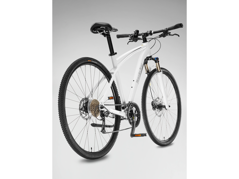 Συμπεριλαμβάνεται Φ.Π.Α.This sporty Fitness Bike with its exclusive Mercedes-Benz design has a lightweight aluminium frame, innovative 73.7 cm (28-inch) wheels and a sporty, comfortable seat position. The frame has a fashionable white finish. Equipment: Suntour suspension fork with 63 mm travel, hydraulic disc brakes by Shimano, Shimano DEORE shift components, Continental CrossRIDE tyres, Phorm saddle. The frame is available in M, L and XL. The frame sizes are designed for cyclists with the following height measurements: M = 160 - 171 cm, L = 170 - 181 cm, XL = 180 - 191 cm.
