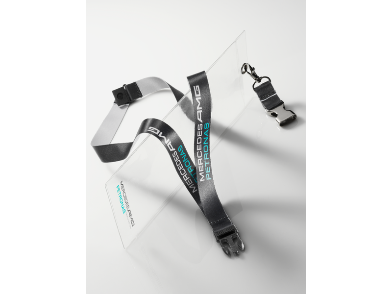 Συμπεριλαμβάνεται Φ.Π.Α.Lanyard. Black/silver-coloured. 100% polyester. Pass holder. Safety clasp. Mercedes AMG Petronas logo print on lanyard and pass holder. Width approx. 2 cm.
